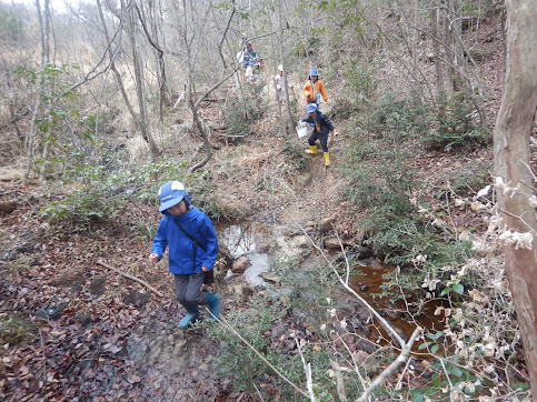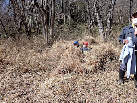 保全作業学習 ヌマガヤ運び 間伐体験